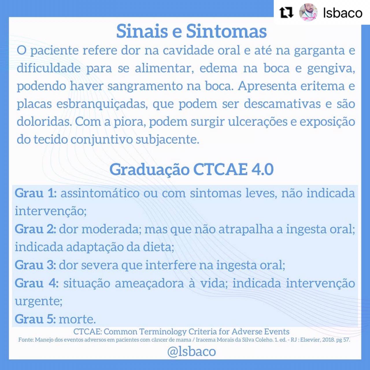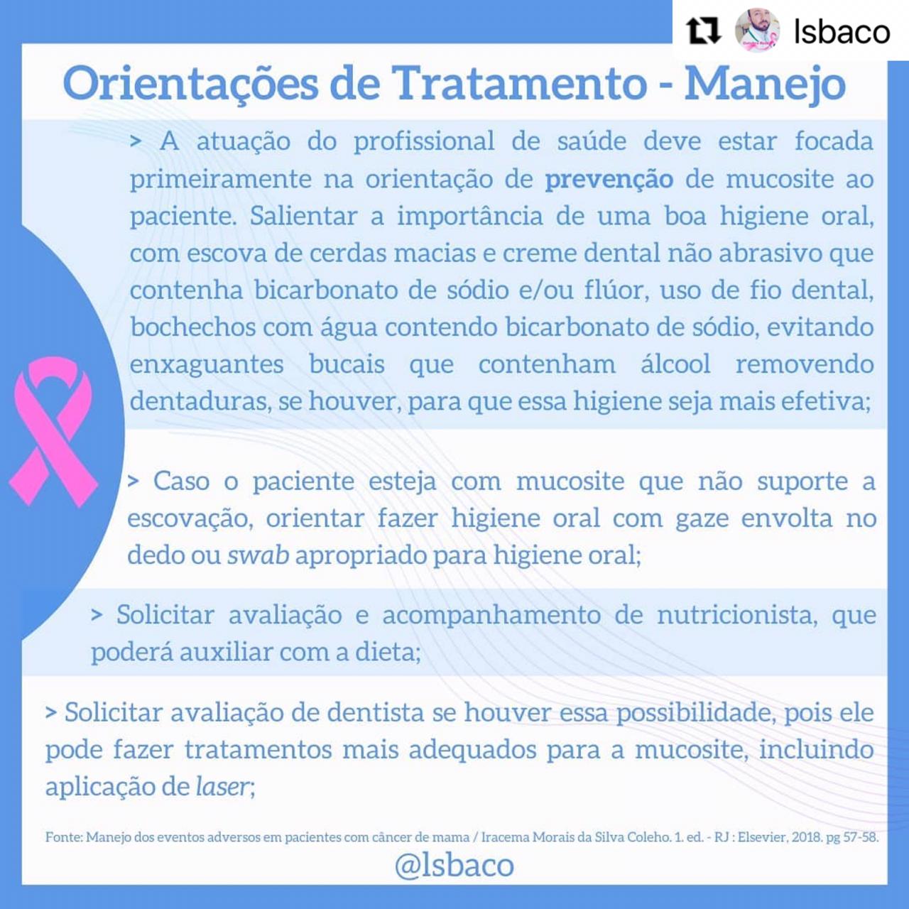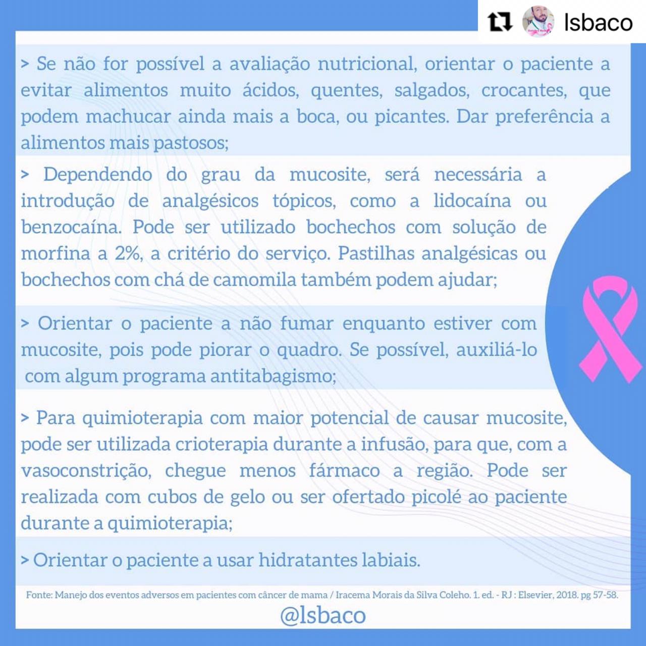 – Manejo de eventos adversos em pacientes com câncer de mama / Iracema Morais da Silva Coelho. – 1. ed. Rio de Janeiro : Elsevier, 2018. Páginas 56 – 57.